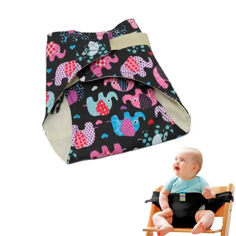 Ajustable para adaptarse a casi todos los estilos de Silla Lleva a cualquier lugar para sentar a tu bebe de manera segura Ligero, cómodo y lavable. Material: Genero Diseño: Elefantes Medida. 44 cm x 46,5 cm x 24 cm aprox Contenido: 1 Cinturón para Sillas.