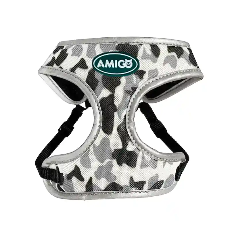 . Arnés para mascotas ligero y cómodo. . Acolchado en las partes internas para comodidad de tu mascota. . Diseño moderno y de calidad. . Con Bordes Reflectantes. Especificaciones: . Marca: Buen Amigo. . Material: Nailon. - Tipo De Mascota: Perros . Talla: M. . Medidas: Cuello de 45 cm / Pecho de 46 a 54 cm aprox. . Contenido: 1 Arnés Pechera