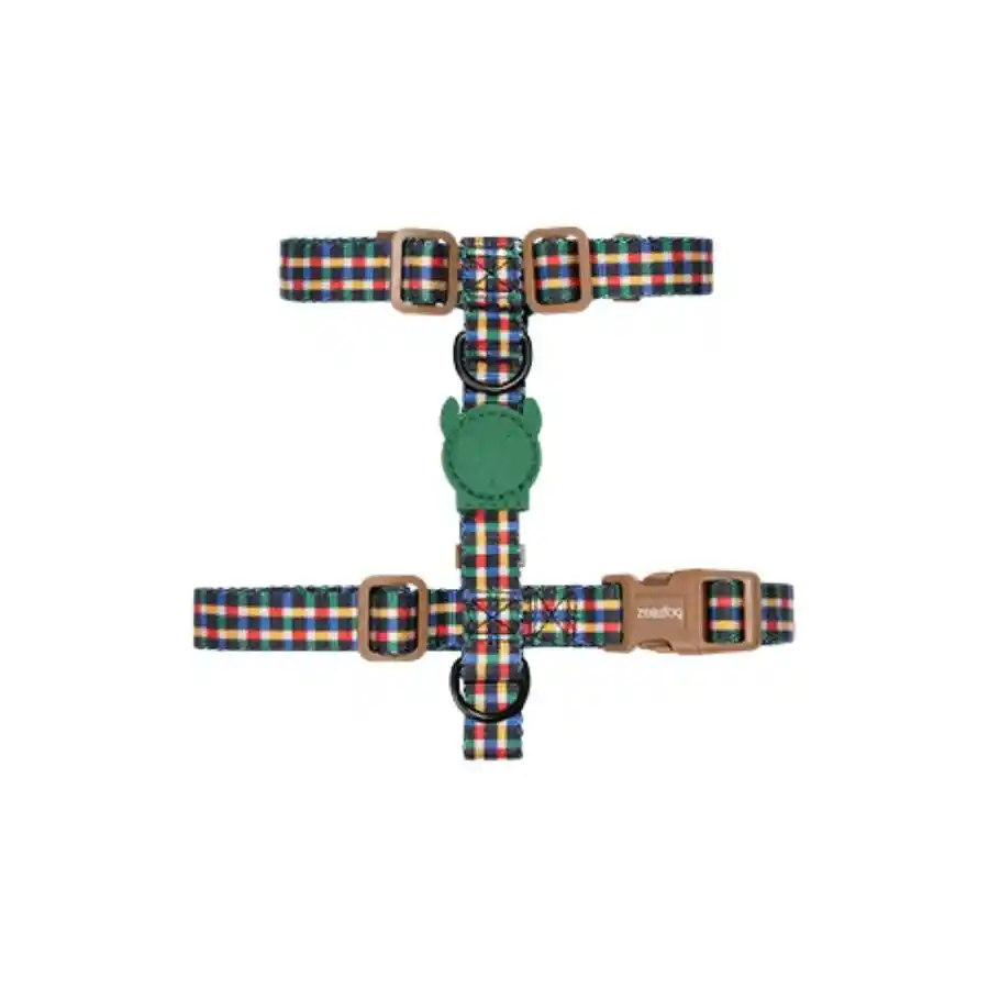 Arnés de poliéster suave y resistente, doble argolla en “D” para enganchar la correa y broche con bloqueo de 4 puntos para máxima seguridad. Fácil mantención con jabón neutro. Ideal para paseos diarios en ciudad o parque.