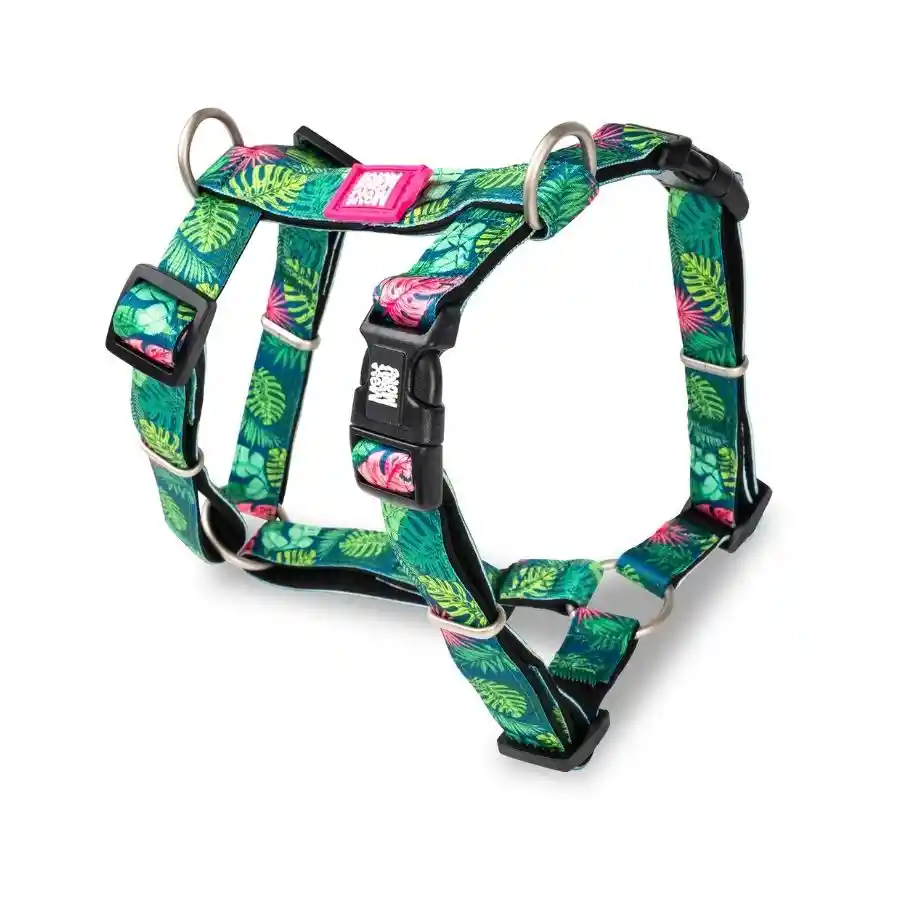 Los arneses con forma de H de Max Molly son el compantilde;ero diario perfecto para ti y tu mejor amigo. Con nuestros disentilde;os creativos transformas los paseos en una pasarela y seguro que seras el centro de atencion de tus seguidores. Los arneses Max Molly no solo son elegantes, sino tambien seguros y practicos. Los dos cierres de clic super fuertes sostienen 5 veces el peso del perro, el controlador hace que el arnes sea infinitamente ajustable y, por lo tanto, se puede adaptar a casi cualquier perro. Hay dos anillos en D en la parte posterior para un mejor control o simplemente para colgar accesorios si es necesario. Los arneses H estan fabricados por un lado de poliester robusto estampado con disentilde;os unicos y el neopreno suave, de secado rapido y flexible en la parte posterior. Debido a la eleccion de los materiales, los arneses H son ultraligeros y especialmente comodos para que los lleve su perro. Tu perro ni siquiera lo notara. Con este arnes podras empezar tu proxima aventura sin preocupaciones. Medidas: Talla XS: Cuello ajustable de 24 a 39 cm. Dorso ajustable de 32 a 40 cm. Para perros de hasta 7 kg. Talla S: Cuello ajustable de 30 a 46 cm. Dorso ajustable de 44 a 52 cm. Para perros de 7 a 15 kg. Talla M: Cuello ajustable de 36 a 58 cm. Dorso ajustable de 54 a 69 cm. Para perros de 15 a 25 kg. Talla L: Cuello ajustable de 46 a 77 cm. Dorso ajustable de 71 a 98 cm. Para perros de 25 a 40 kg. * Si tu perro esta aun en crecimiento, te recomendamos elegir la talla con mas holgura en relacion a su peso.