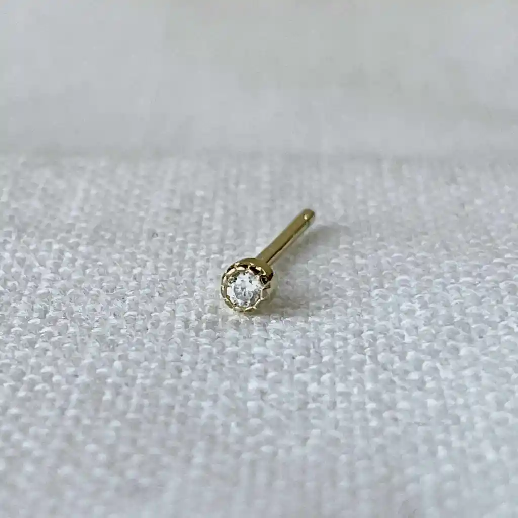 Aro con pequeño circón redondo, elaborado en plata 925, libre de níquel y enchapado en oro 22k. Diámetro: 3mm Sin Cambio