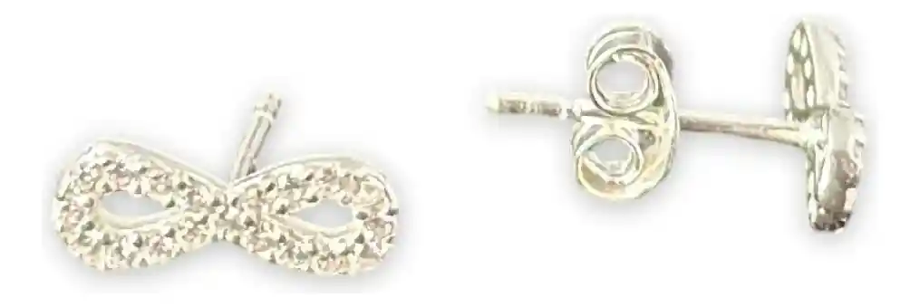 Aros modelo infinito, plata autentica italiana 925 Circones suizos color blanco. Tornillo plata italiana 925