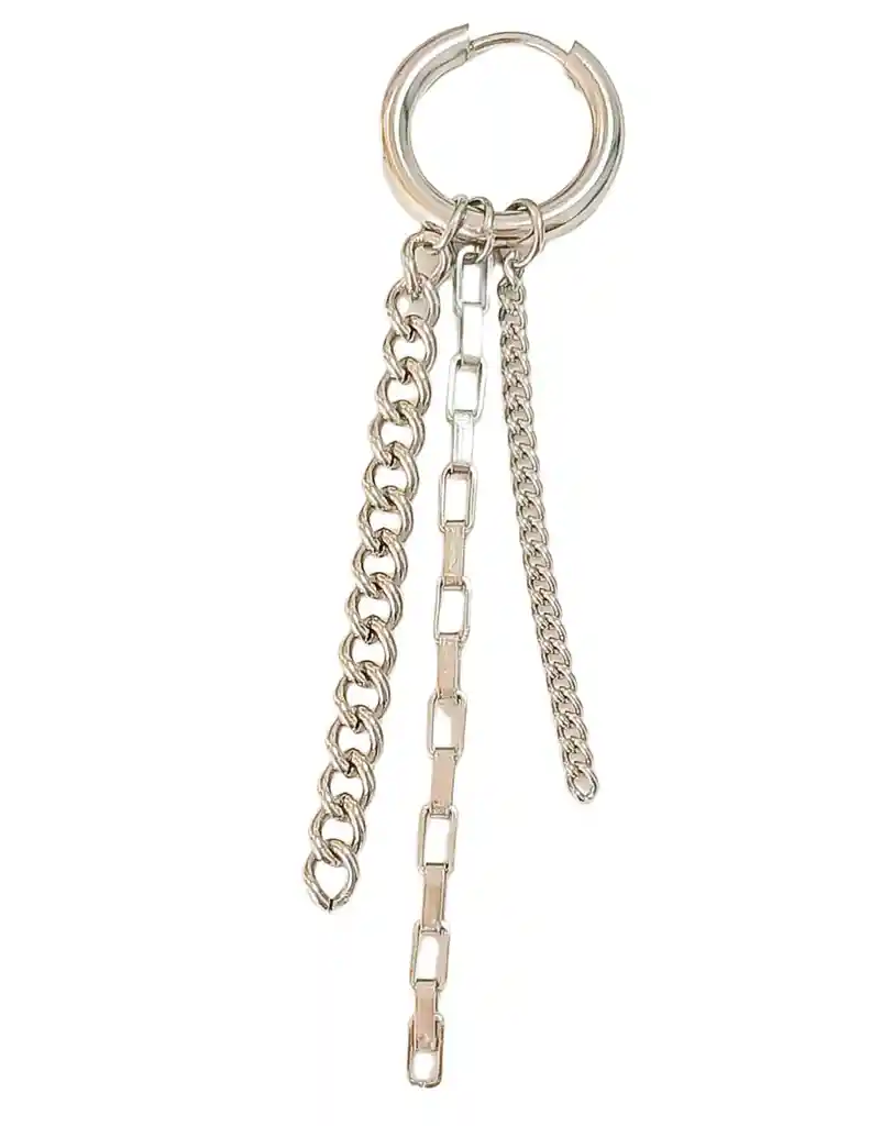 Pendiente solitario estilo kpop de cadenas de eslabón Longitud: 74mm Peso aprox: 3.5 gr Material: Acero inoxidable hipoalergénico Es importante que sepas que es una unidad de pendiente (Se envia en bella presentacion para regalo) Ofrecemos joyas únicas que cuentan historias especiales. Contamos con una amplia variedad de joyas de metales preciosos, gemas y arte adaptados a los gustos de nuestros clientes. Además, disponemos de auténticas piedras preciosas de la mejor calidad. Descubre nuestros productos en plata, oro, oro rosa y acero quirúrgico 316L, perfectos para cualquier ocasión. Encuentra el regalo u obsequio perfecto para cumpleaños, aniversarios, San Valentín, día de las madres, día del padre, graduaciones, viajeros, bodas y más. ¡Regalos originales y obsequios para todo tipo de fanáticos y amantes de la vida! Una joya o accesorio es el obsequio perfecto pues siempre añade un toque de elegancia a tu atuendo y look.