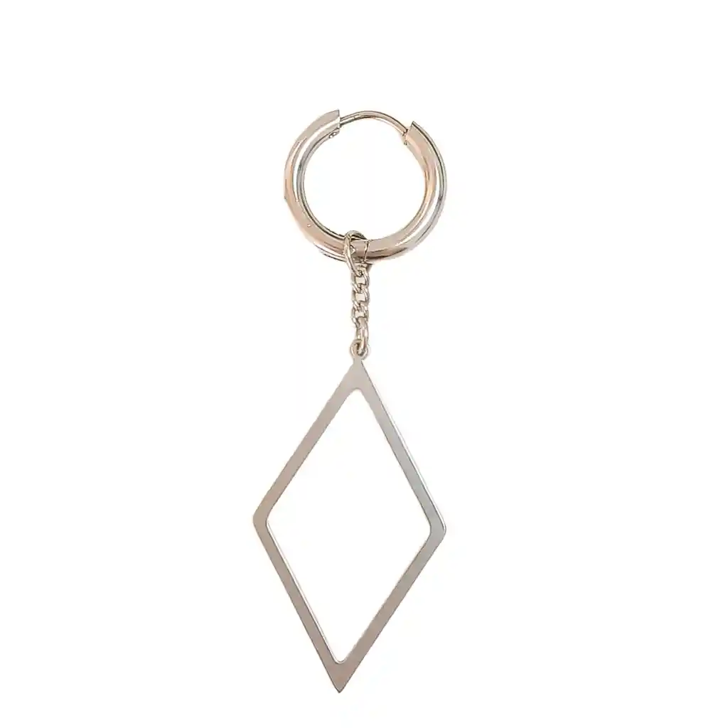 Pendiente solitario estilo kpop, de cadena de eslabón y rombo grande colgante Longitud: 60mm Peso aprox: 3.5 gr Material: Acero inoxidable hipoalergénico Es importante que sepas que es una unidad de pendiente (Se envia en bella presentacion para regalo) Ofrecemos joyas únicas que cuentan historias especiales. Contamos con una amplia variedad de joyas de metales preciosos, gemas y arte adaptados a los gustos de nuestros clientes. Además, disponemos de auténticas piedras preciosas de la mejor calidad. Descubre nuestros productos en plata, oro, oro rosa y acero quirúrgico 316L, perfectos para cualquier ocasión. Encuentra el regalo u obsequio perfecto para cumpleaños, aniversarios, San Valentín, día de las madres, día del padre, graduaciones, viajeros, bodas y más. ¡Regalos originales y obsequios para todo tipo de fanáticos y amantes de la vida! Una joya o accesorio es el obsequio perfecto pues siempre añade un toque de elegancia a tu atuendo y look.