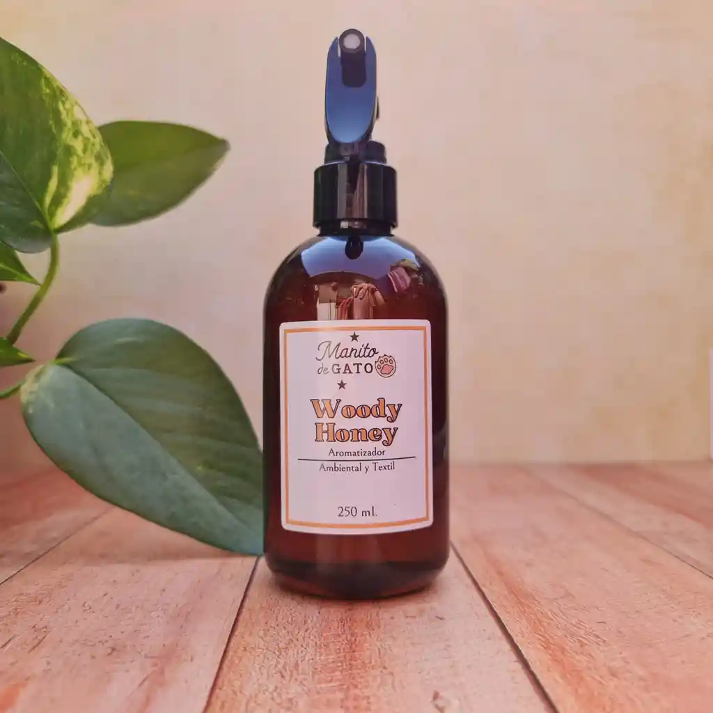 Estos maravillosos aromatizadores veganos, aromatizan telas y ambientes en un 2 por 3! Si lo vas a aplicar sobre telas debes tener claro que no manchan, asi que dale sin miedo! Vienen en formato de 250 mL. Woody Honey: amaderado con toques de miel, el dulzor preciso para esta fragancia con toques de pino.