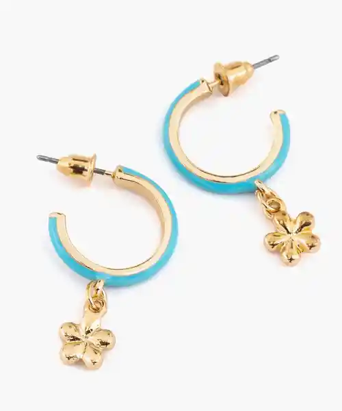 Par. Argollas Doradas Con Resina y Colgante de Flor.