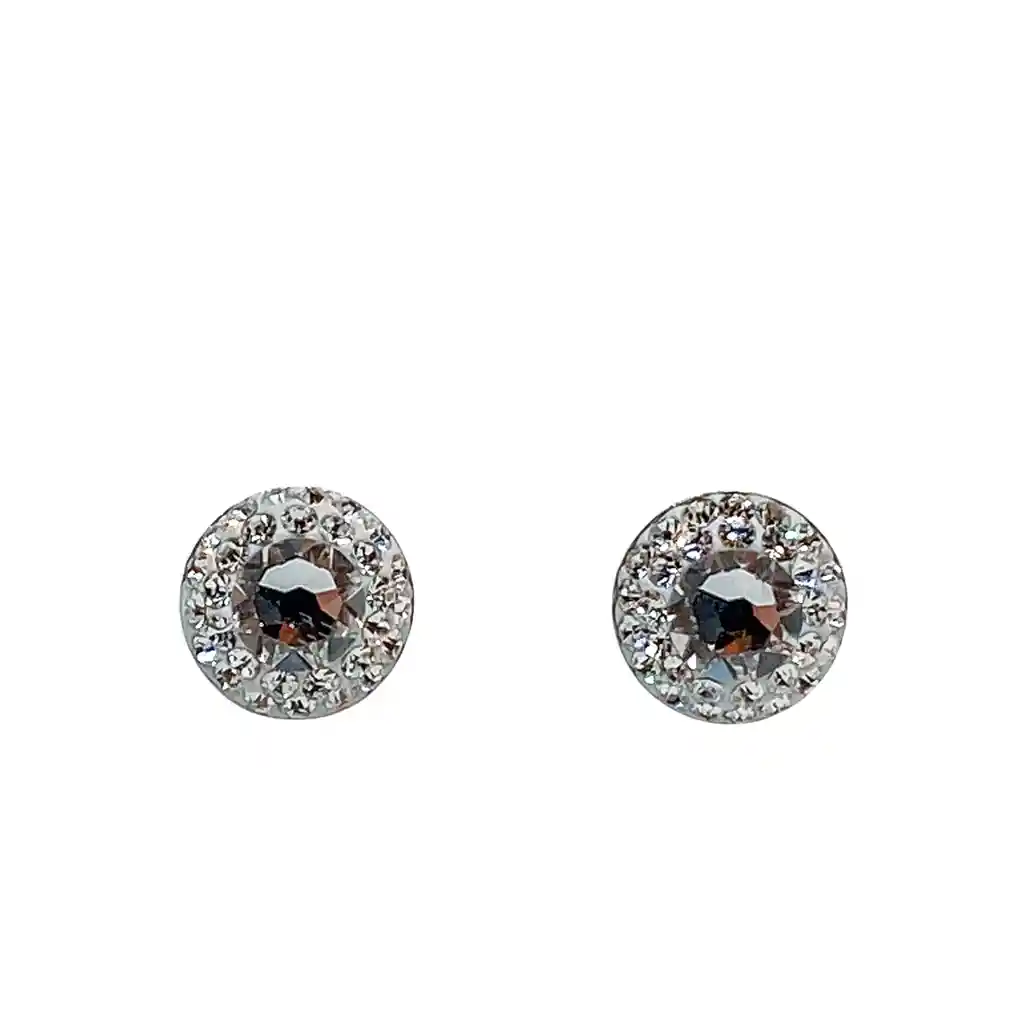 Aros Apegados Boton Cristal Y Cortes De Cristal Swarovski