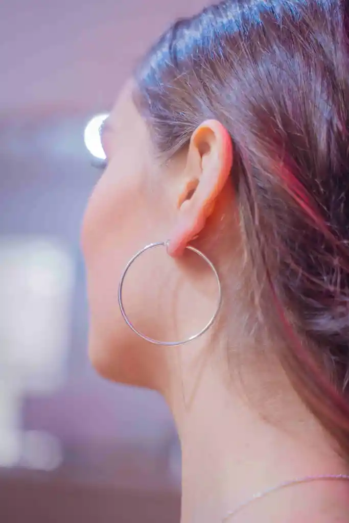 AROS DE ARGOLLA MEDIANA EN TONOS PLATEADOS.
