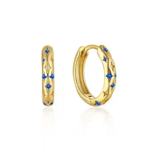 Aros hechos de plata Italiana 925 y circones de alta calidad Bañado en Oro Amarillo. Color Circón: Azul. Diámetro: 1,4 cm. Libre de níquel y plomo. Incluye elegante caja.