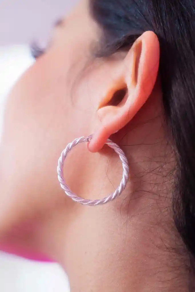 AROS DE ARGOLLA CON DETALLE RETORCIDO COLOR PLATA.
