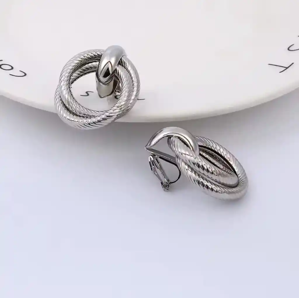 Hermosas argollas fantasía plateadas clip , para brillar en cualquier ocasión. Aprox 1Cm.