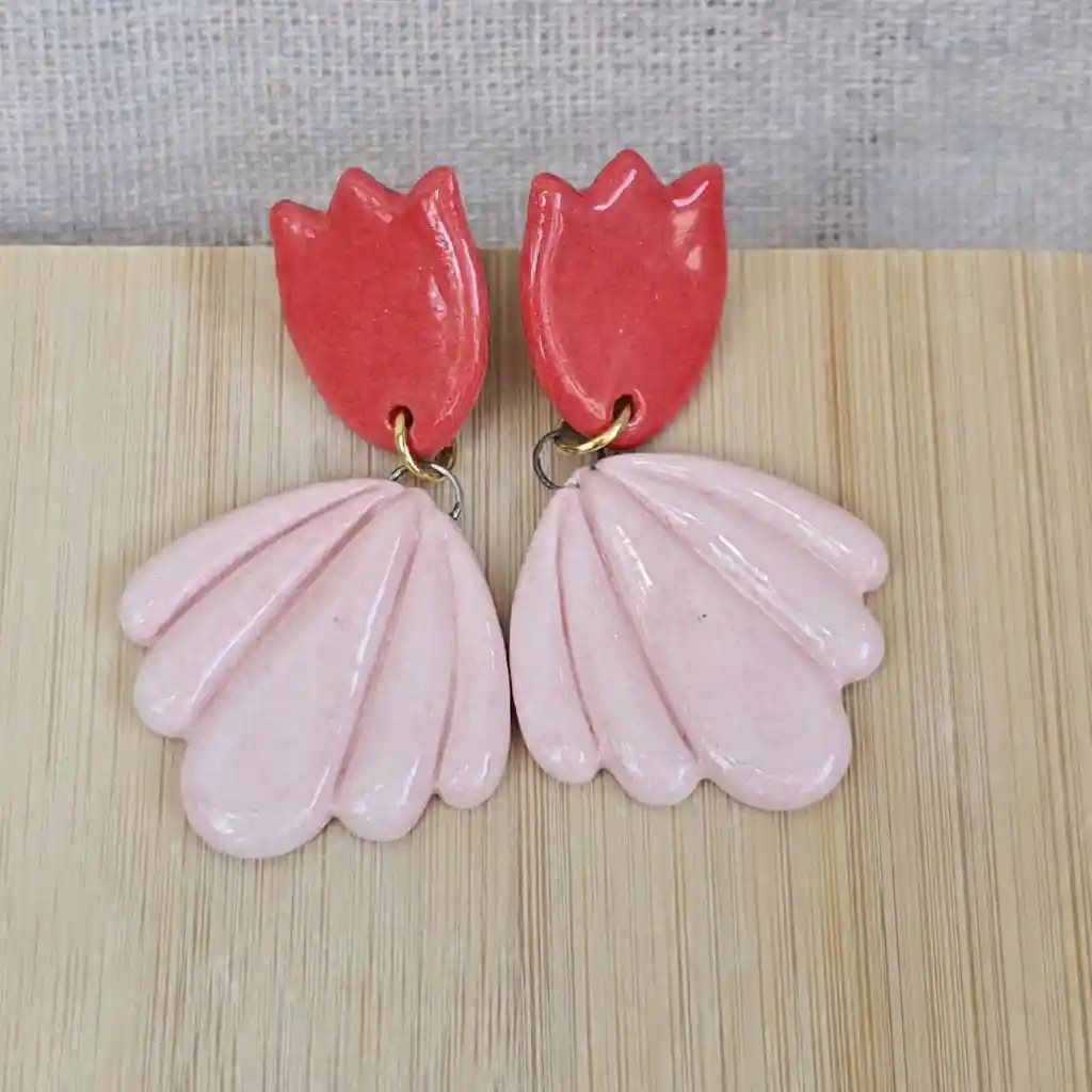 Piezas de joyería cerámica hechas a mano por Connie Achurra, ganchos y cadenas de bronce con baño de oro, palitos de acero quirúrgico e hipoalergénico. Los aros son muy livianos, 8 gr aprox y las piezas son firmes y duraderas.