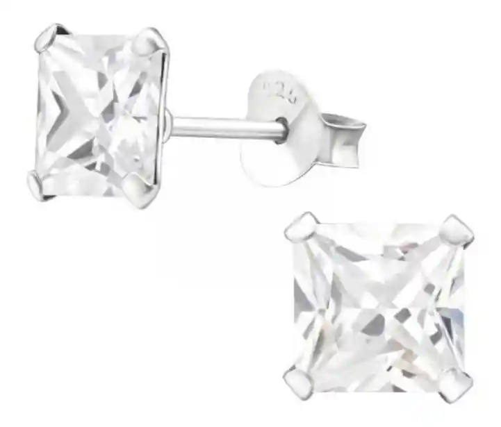Hermosos aros cuadrados 6mm con circon suizo. En plata italiana 925.