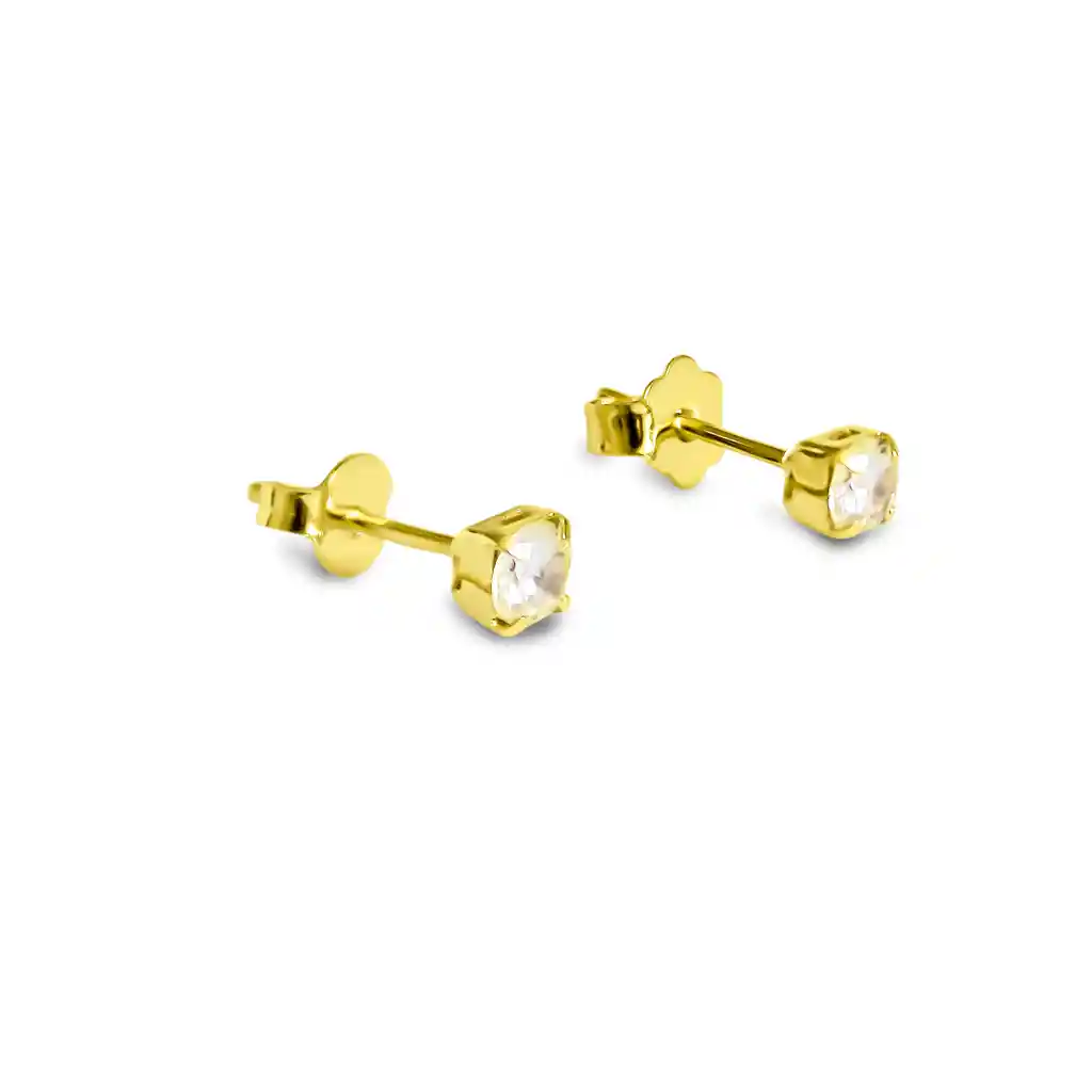 Destaca con la delicadeza y el brillo de estos aros de diseño cuadrado, adornados con un circón blanco de 4mm. Enchapados en Oro de 18K, son hipoalergénicos y libres de níquel, ideales para realzar cualquier look con un toque sofisticado y moderno. Medidas: Diámetro circón 4mm. Peso 0.5gr.