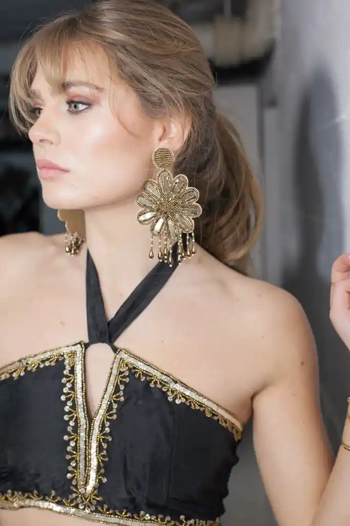 Aros bordados con pedrería dorada