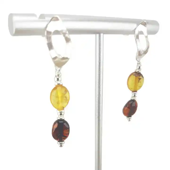 Aros de Ámbar Báltico (Lituania), ovaladas de 0,7 cm. Base de aro y conectores de Plata 925. Largo: 4 cm Ámbar: purifica y limpia el organismo. Absorbe las energías negativas. Alivia el dolor de encías. El Ámbar Báltico contiene Ácido Succínico, una sustancia natural no tóxica que se libera en el torrente sanguíneo cuando se pone en contacto con el calor de la piel. Ligero, cálido, cómodo y elegante, el Ámbar puede ayudar a aliviar el dolor de forma natural, reducir la inflamación de las encías y las mejillas, disminuir el babeo y la acidez y aliviar la irritabilidad. Plata: Es antibacteriana. Calma los nervios. Potencia la creatividad. Ayuda a liberar las emociones. Incluye: bolsa de regalo Cambios: 1 mes Garantía: 3 meses