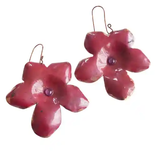 Hechos a mano en cobre pintado y resinado para protegerlo de la oxidación. Dimensiones: 6 cms diámetro aprox.