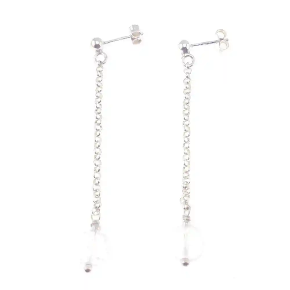 Aros de piedra natural de cuarzo cristal bola facetada de 7,5 cm. Base de aro bola de 0,4 cm, cadena de 4 cm y conectores de Plata 925. Largo 6 cm. Cuarzo Cristal: protector natural de toda energía negativa. Limpia y purifica el ambiente de su entorno. Plata: Es antibacteriana. Calma los nervios. Potencia la creatividad. Ayuda a liberar las emociones. Incluye: bolsa de regalo Cambios: 1 mes Garantía: 3 meses
