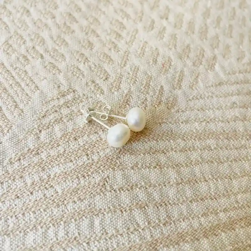 Aros de perla natural con base de plata. El diámetro de la perla es de 7mm.