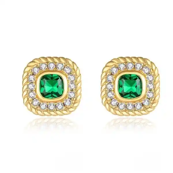 Aros hechos de plata Italiana 925 y circones de alta calidad. Bañado en oro amarillo. Color Circón: Blanco y Verde. Tamaño: 0,9 cm. Libre de níquel y plomo. Incluye elegante caja.