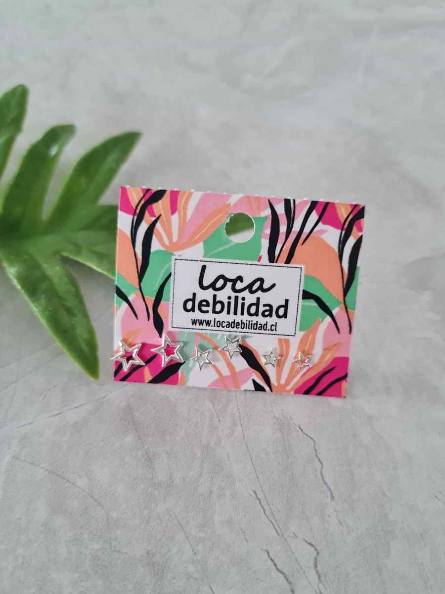 Set perfecto de estrellitas con distintos tamaños. Muy lindos para regalar! Bañados en Plata. Libre de níquel. Se entregan envueltos en un papel seda dentro de una preciosa cajita. Perfecta para regalar y quedar como reina.