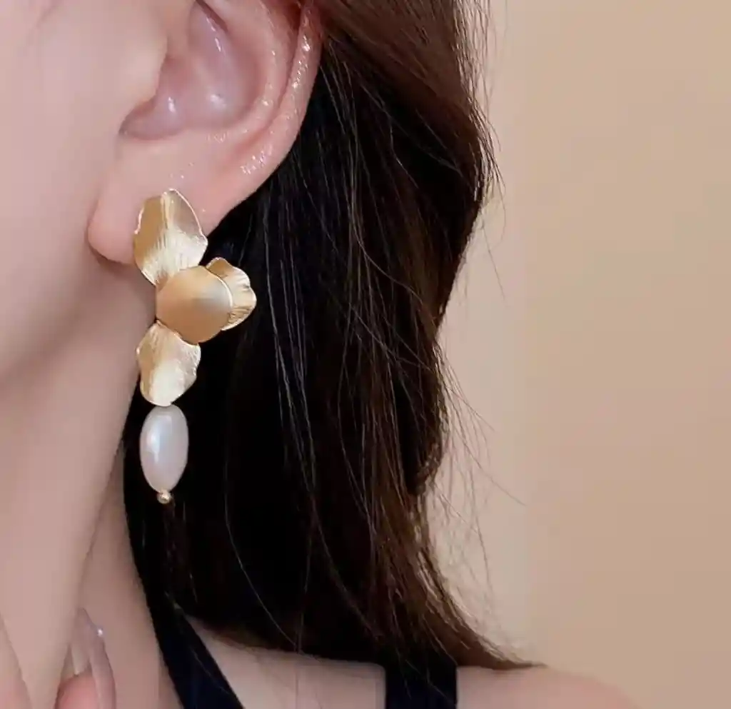 Hermoso aro Flor dorada , con perla blanca . Aro con Orificio.