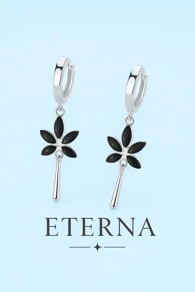 Aros de plata con flor negra y caída brillante. Elegantes, ligeros y perfectos para realzar cualquier look.