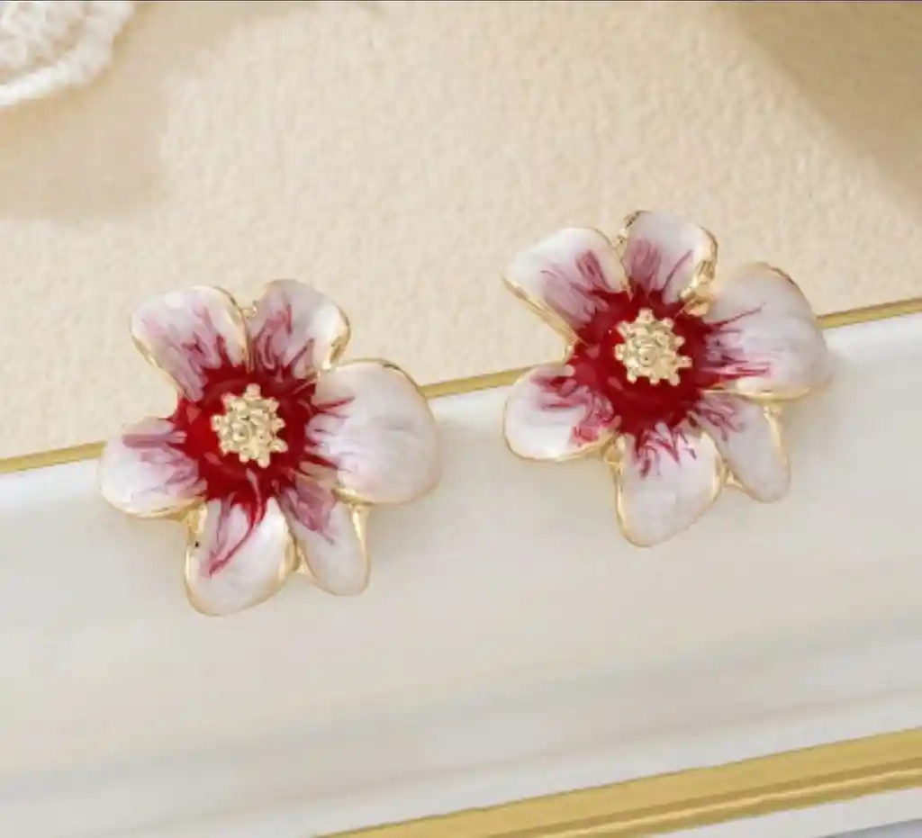 Hermosos aros flores del jardín , con fondo rojo , aros fantasía con clip.