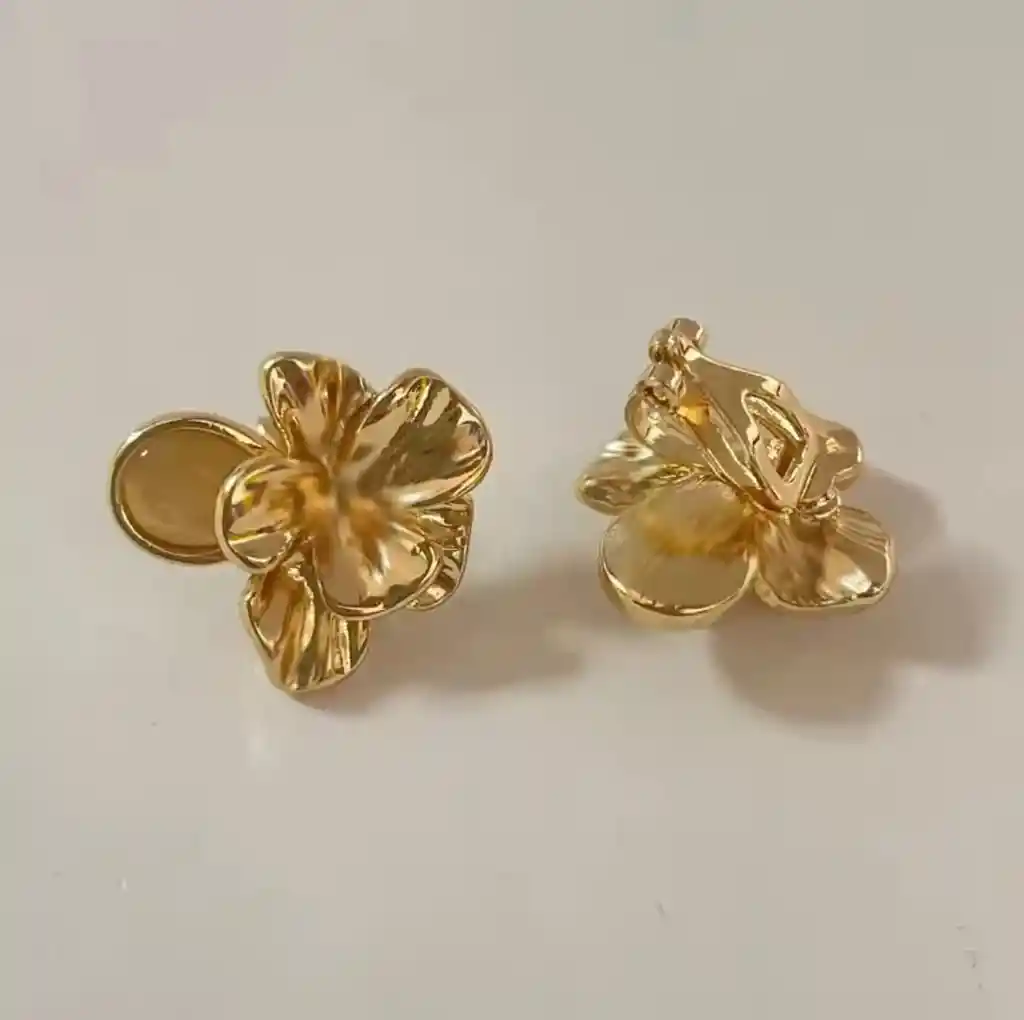 Hermosos aros fantasía flores del jardín doradas y con clip. Para usar en cualquier ocasión. Aprox 1Cm.