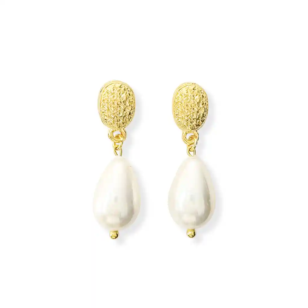 Aros Gota Shellpearl con Tope Oval Enchapado en Oro 18K. Elegancia atemporal en cada detalle. Estos aros destacan por su diseño refinado: una delicada gota de Shellpearl suspendida de un tope oval Enchapado en Oro 18K, ideal para dar un toque de sofisticación a cualquier look. Hipoalergénicos, libres de níquel y con terminaciones de alta calidad. Perfectos para ocasiones especiales o para elevar tu estilo diario con un brillo sutil y elegante. Medidas: Largo total aros 32mm. Tamaño tope 10x7mm. Tamaño gota 15x14mm. Peso 5,6 gr.