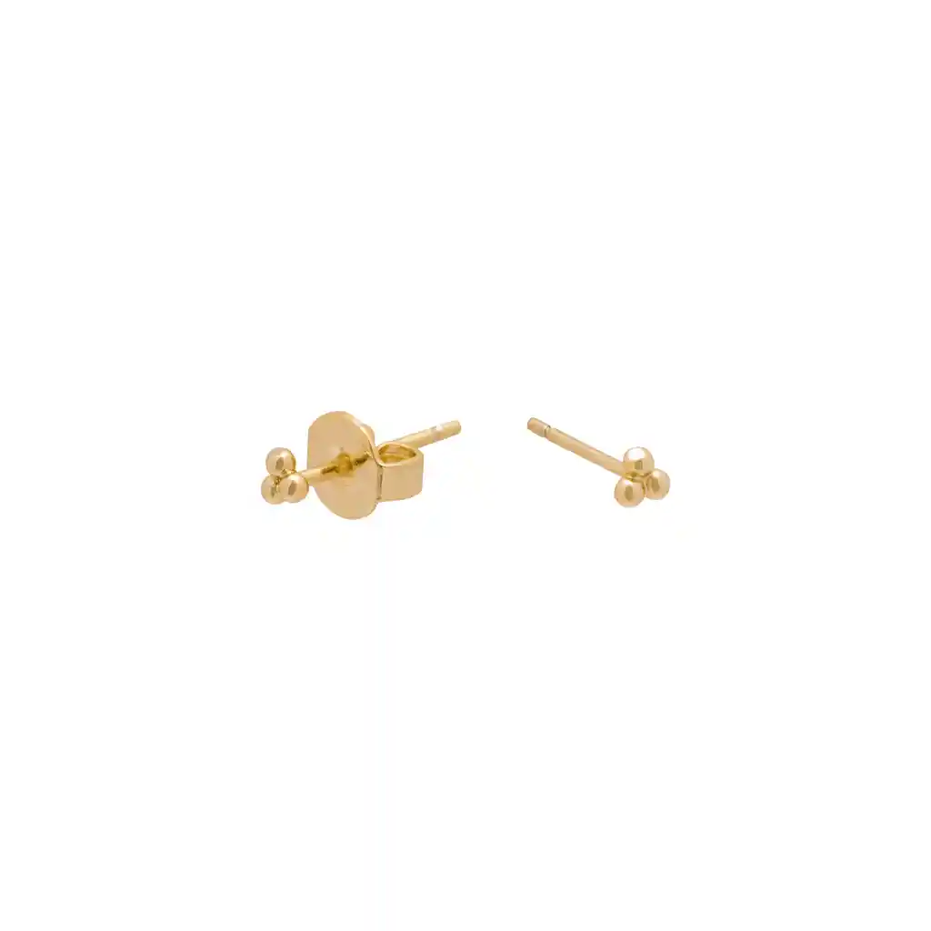 Las Iris son unos pendientes bañados en oro de 14 quilates. Son tres pequeñas esferas doradas que juegan con las formas geométricas. Ideales para combinarlas con otros aros de la Nueva Colección. ¡Todas nuestras joyas vienen con un packaging especial que te enamorará!