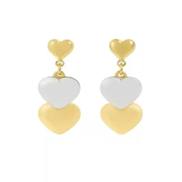 Aros con 3 baños de oro, un baño de 18, uno de 22 y uno de 24 kilates. Corazón plateado tiene una capa de baño de plata. Hecho con tecnología de láminas. Largo: 3,5 cm. Libre de níquel y plomo. Incluye elegante caja. Metal base: Bronce.