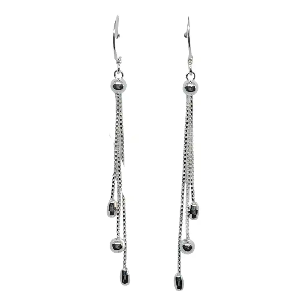 Aros largo melón cadena, fabricado en plata fina ley 925, sólida. Su calidad es garantizada y libre de níquel. Medidas: Largo total 73mm. Tamaño melón es de 5x3mm. Peso 2,2 gr.