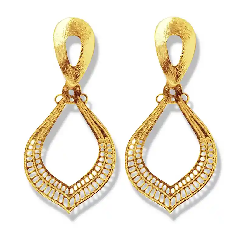 Elegantes y hermoso aros Martha satinados, son enchapado en oro de 18K. Tienen una aleación de metales y es libre de níquel. El material es hipoalergénico y su calidad es garantizada. Sus medida son 42mm de largo en total y 20mm de ancho. Tiene un peso de 1,8 gr.