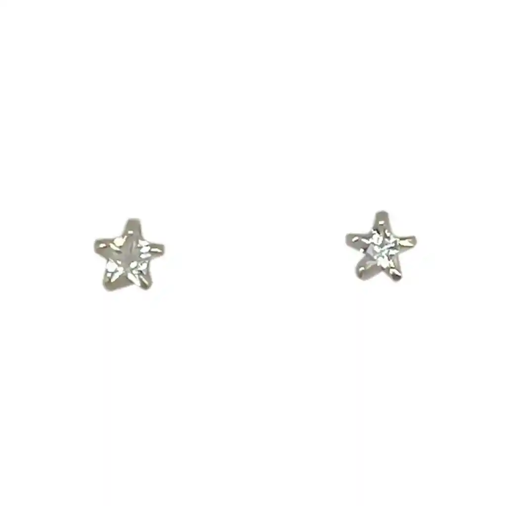 Hermosos y delicados aros tamaño mini en forma de estrella en circón blanco en Plata Fina ley 925 sólida. La calidad del material es garantizada y no posee níquel. Medidas de los aros, tamaño de cada estrella 3mm. El par de aros pesa 0,3 gr.