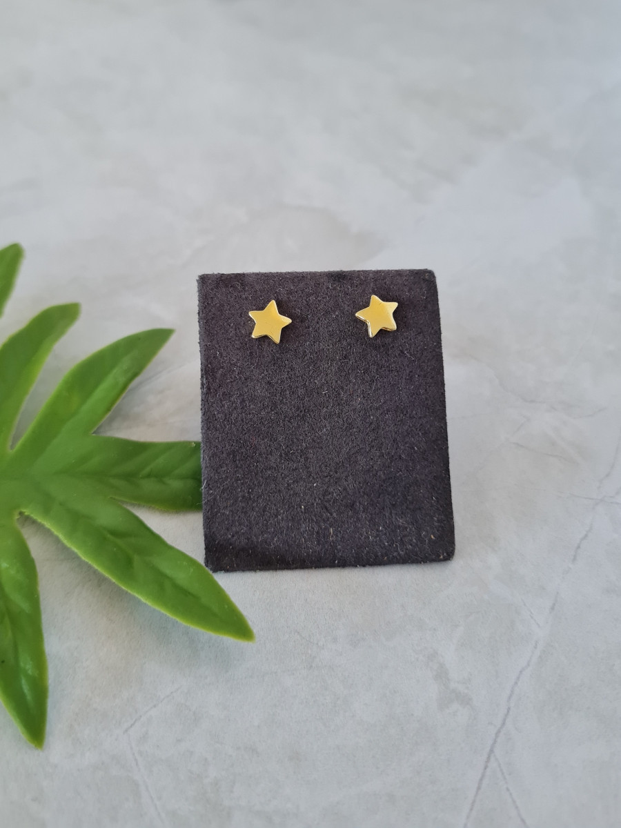 Las estrellas no pasan de moda! Siguen siendo tendencia. Estos aros son básicos, combinan con todo y puedes usarlos tanto en el primer agujerito como en el segundo. Miden 0,7cm y son enchapados en oro