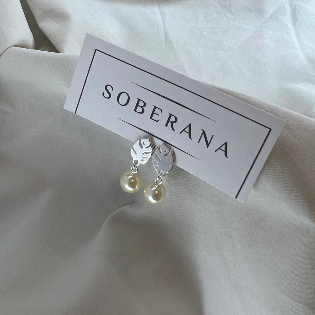 Llegan los Aros Monstera que tanto les gustan pero renovados!!!!!Tienen una base de hoja monstera de 12 x 8 mm y una perla de 8 mm de diámetro. Miden 24 mm de largo total.Enchapados en oro 18k o plata, hipoalergénicos y libres de níque