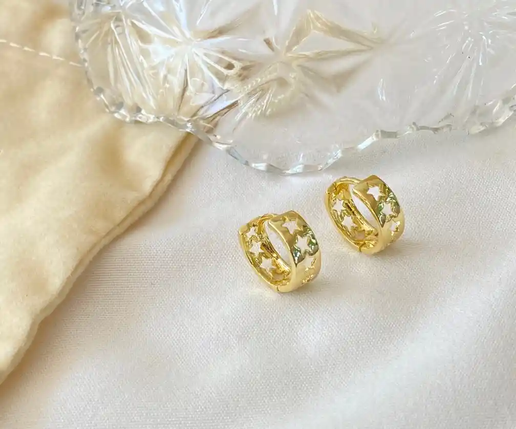 ¡Dile hola a tu nuevo accesorio favorito! Estos hermosos aros son hechos de materiales duraderos, resistentes al desgaste, e hipoalergénicos. Características: Materiales: Enchapado en oro 18k, libre de níquel.