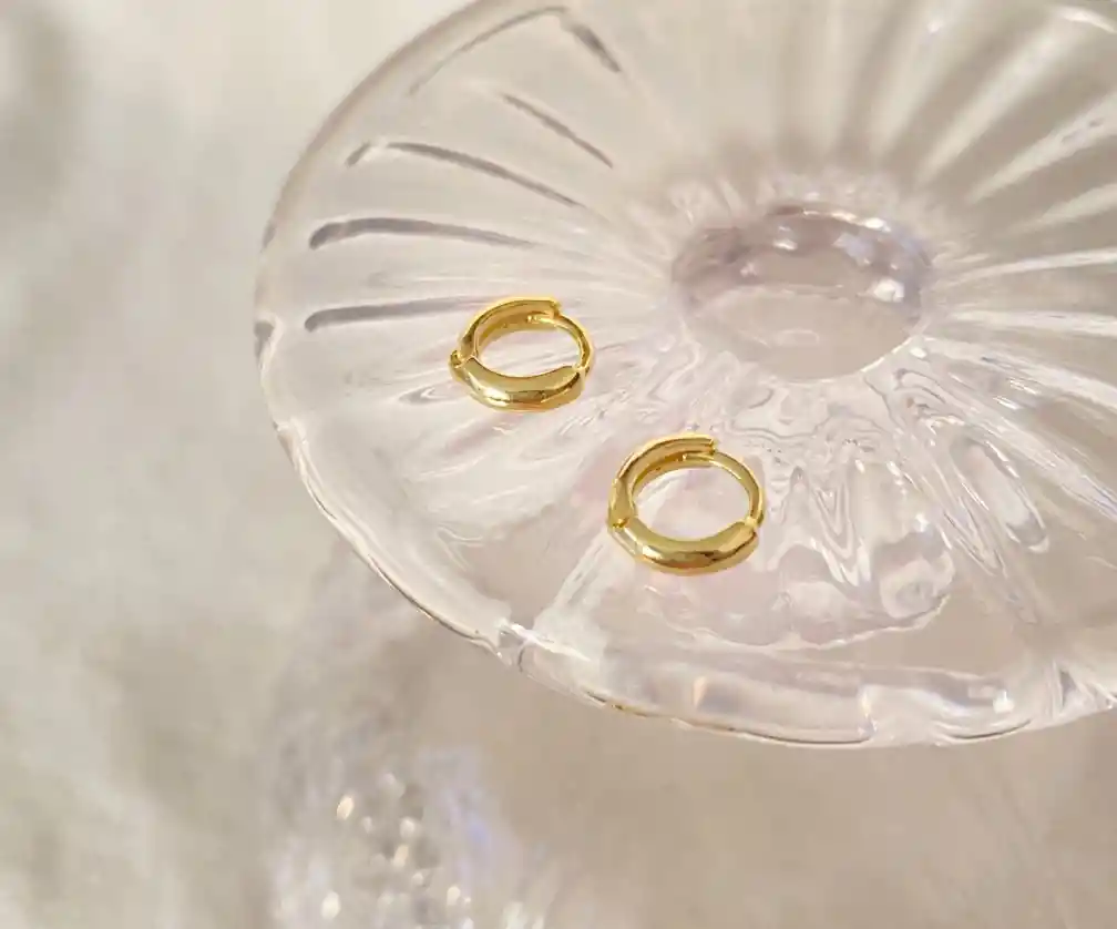 ¡Los aros perfectos para usar cada día! Estos hermosos aros son hechos de materiales duraderos, resistentes al desgaste, e hipoalergénicos. Características: Materiales: Enchapado en oro 18k, libre de níquel.