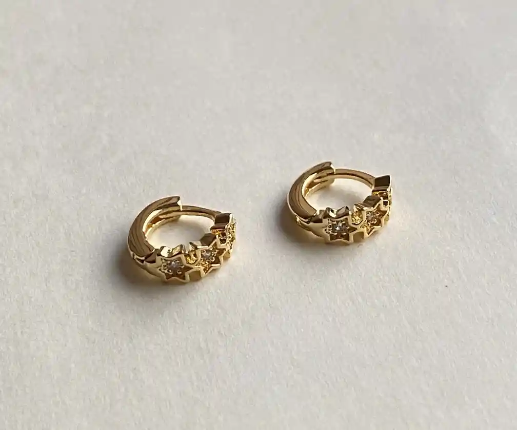 ¡Los aros perfectos para usar cada día! Estos hermosos aros son hechos de materiales duraderos, resistentes al desgaste, e hipoalergénicos. Características: Materiales: Enchapado en oro 18k, libre de níquel.