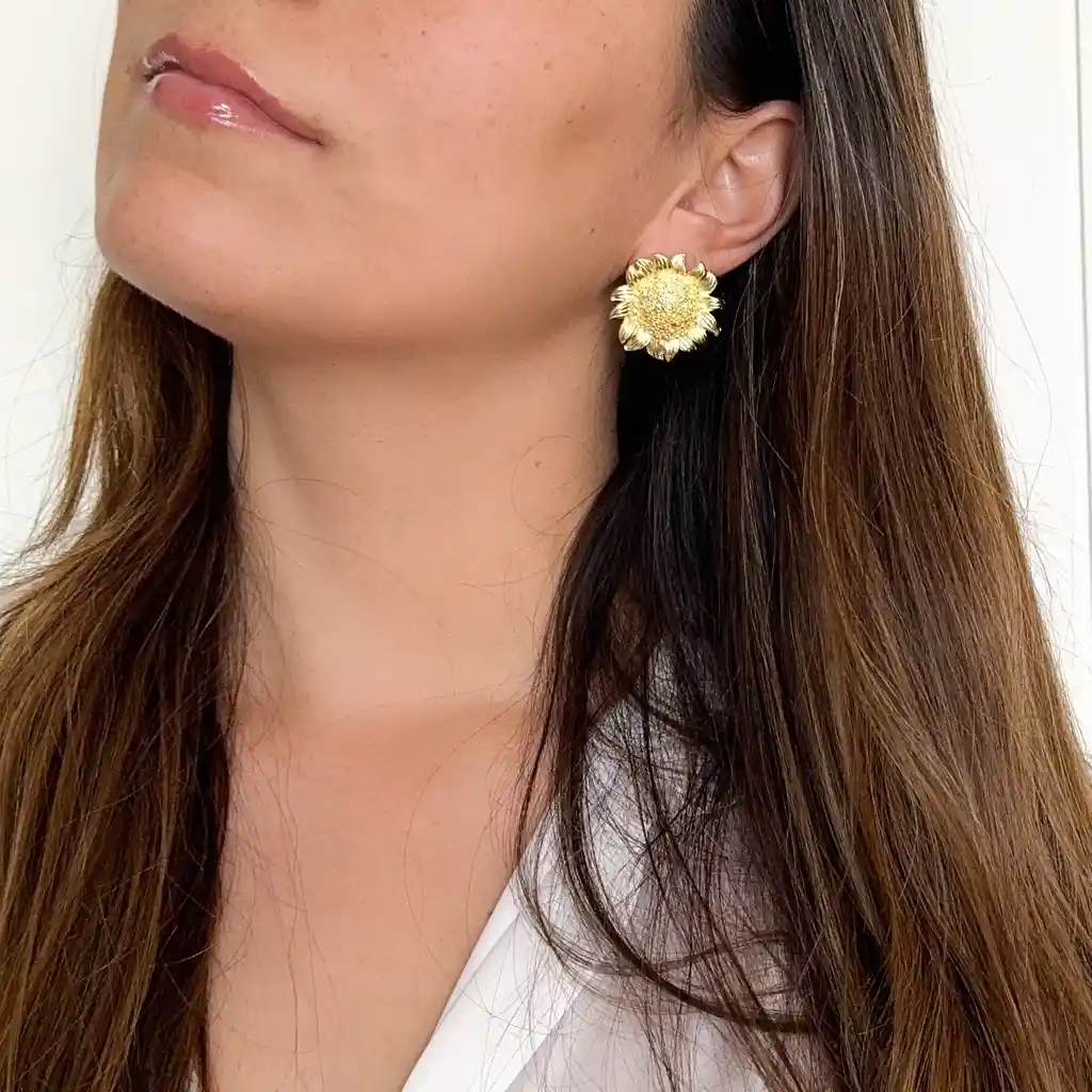 ¡El verano llegó con todo! Y estos aros son un must ésta temporada. Los hermosos aros Girasoles son hechos de materiales duraderos, resistentes al desgaste, e hipoalergénicos. Características: Materiales: Enchapado en oro 18K, libre de níquel.