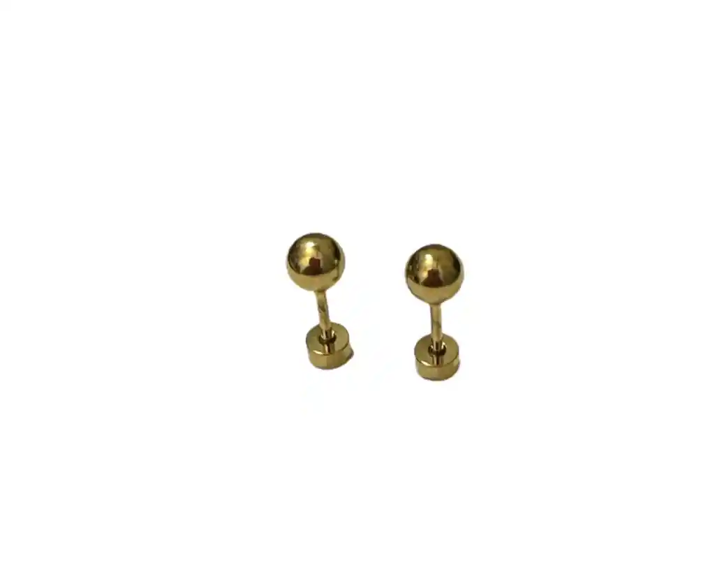 Aros de tope de acero quirúrgico, clásico modelo de pepita color dorado Modelo M 5mm Ya que posee un vástago de tan solo 6mm perfecto para niñas desde 3 años.