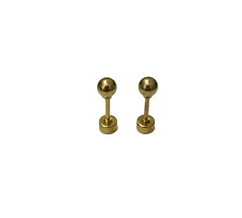 Aros de tope de acero quirúrgico, clásico modelo de pepita color dorado Modelo S4mm Ya que posee un vástago de tan solo 6mm perfecto para niñas desde 3 años.