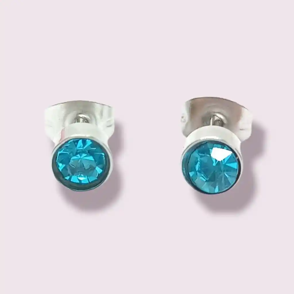 Aros Pequeños Puntos De Luz Acero Quirúrgico Turquesa 5mm