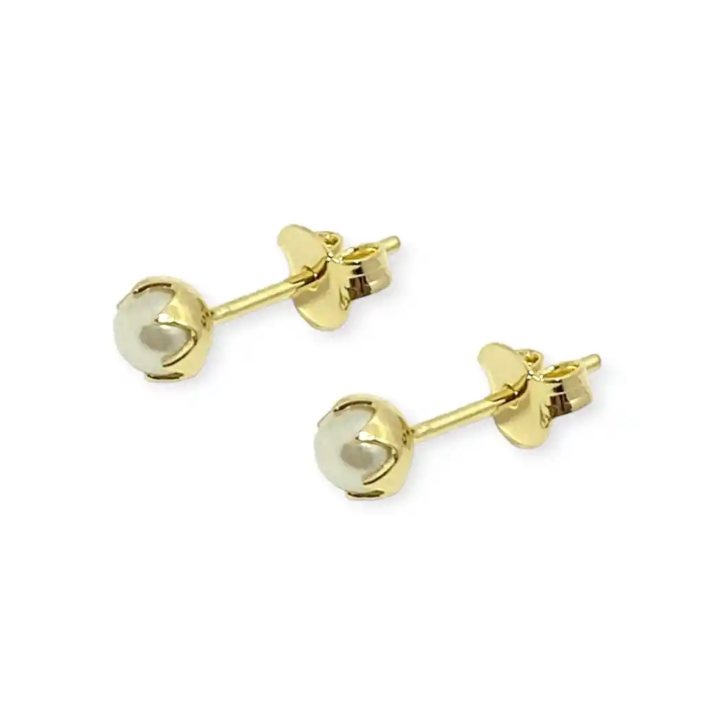 Aros Perla Sintética 4mm Enchapado Oro 18k