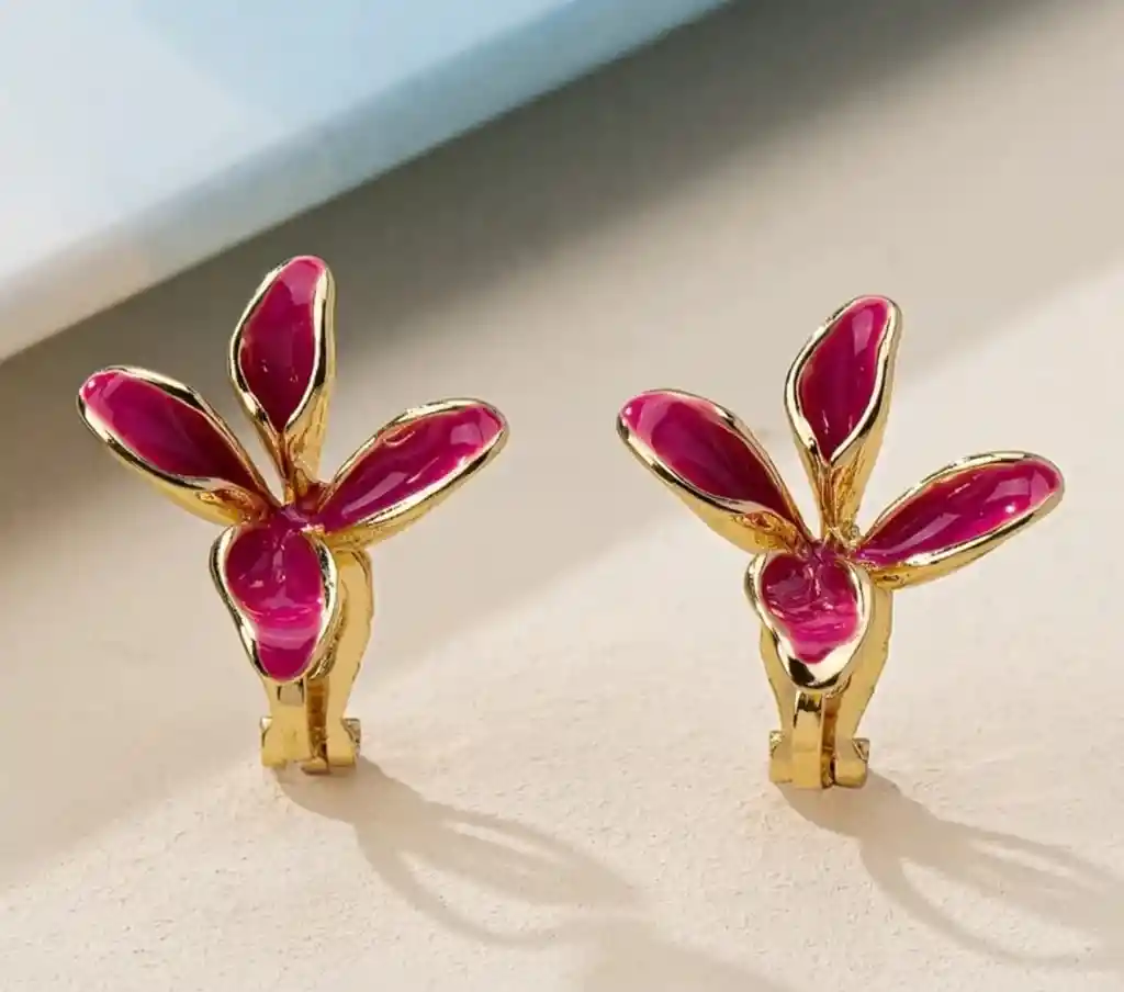 Hermosos aros, color dorado y borde fucsia. Lindos para toda ocasión. Medidas: 1cm, Aprox.