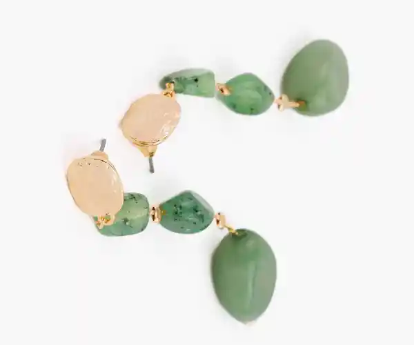 Par. Largos Dorados Con Piedras Irregulares Verdes Con Toques Negros.