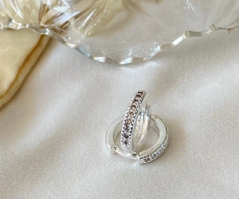 ¡Los aros perfectos para usar cada día! Estos hermosos aros son hechos de materiales duraderos, resistentes al desgaste, e hipoalergénicos. Características: Materiales: Enchapado en plata 925, libre de níquel. Con circones.