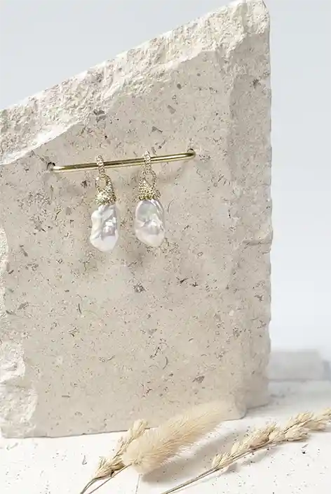 Estos aros combinan la belleza natural y única de las perlas de río con el brillo elegante de los circones. Las perlas, seleccionadas por su forma irregular y textura auténtica, aportan un encanto orgánico y sofisticado al diseño. Cada perla está acompañada por circones brillantes que añaden un contraste deslumbrante, haciendo que los aros resalten aún más.