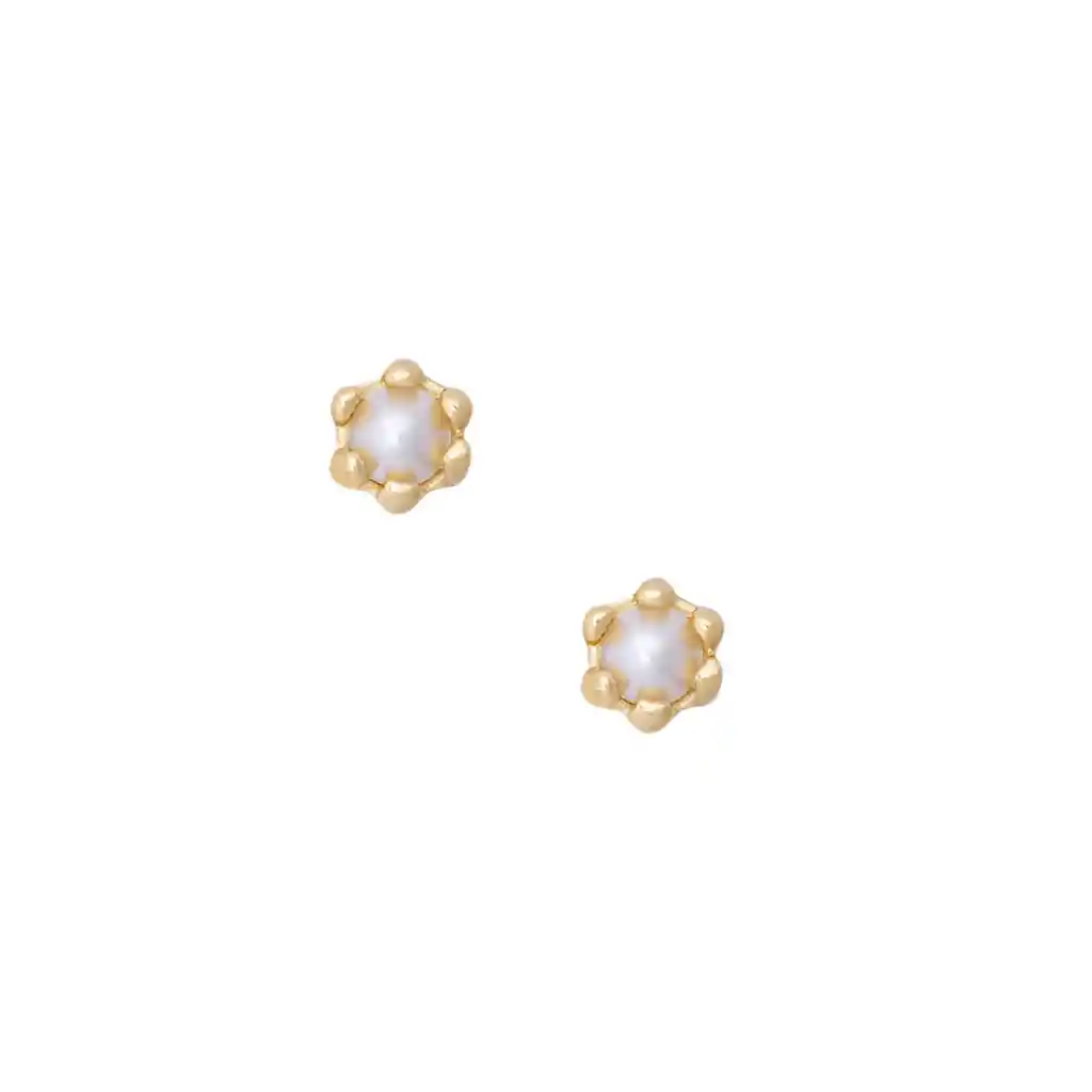 Los Puntos Pearl son unos aros pequeños con cierre mariposa, contienen una perla y son bañados en oro de 14k. Son unos aros perfecto para conseguir un look minimalista o llevarlos como complemento de otros pendientes. Material: Baño de oro de 14k, libre de níquel.